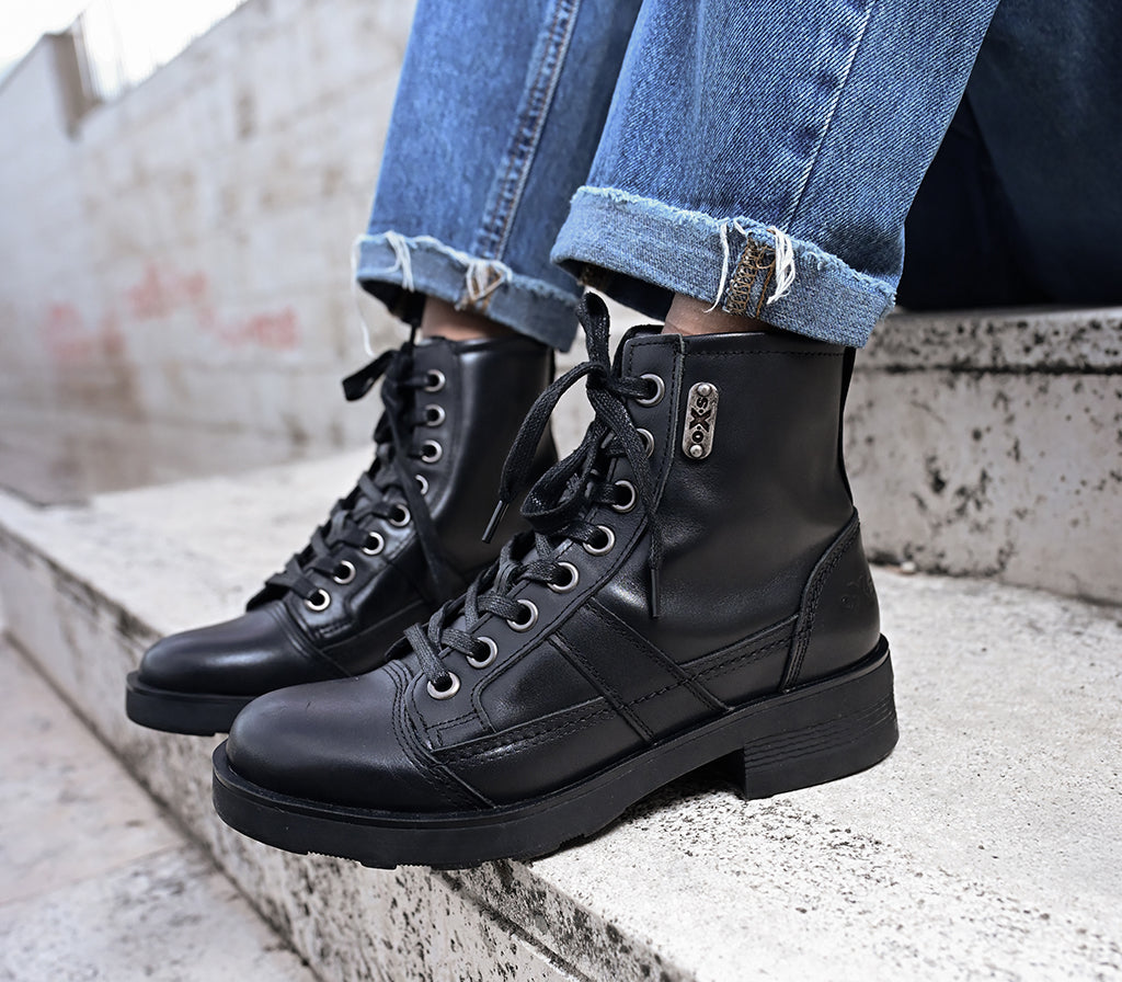 The Frank line women's leather ankle boot gives a special touch to your winter looks. This classic ankle boot combines a lace-up closure with a rubber lug sole for comfortable walking. In black leather, these boots have a 3.5-cm heel that makes them wearable every day.