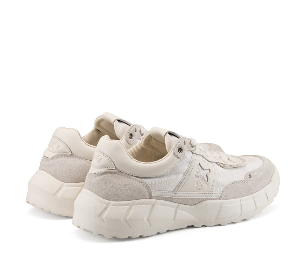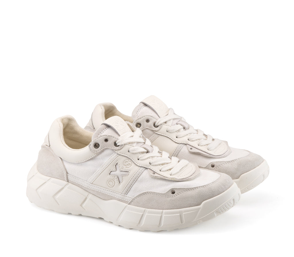 Direttamente dalla collezione SS26, questa nuova sneakers PEYOTE fonde l'anima urban di oXs con uno spirito desert e travel. Realizzata in canvas e suede, questa nuova sneaker incarna il claim "Born in the desert, made for the street", offrendo un design contemporaneo perfetto per ogni avventura metropolitana. Presenta il logo del brand in rilievo e un'innovativa suola extra-light a tasselli geometrici per massima trazione e leggerezza.